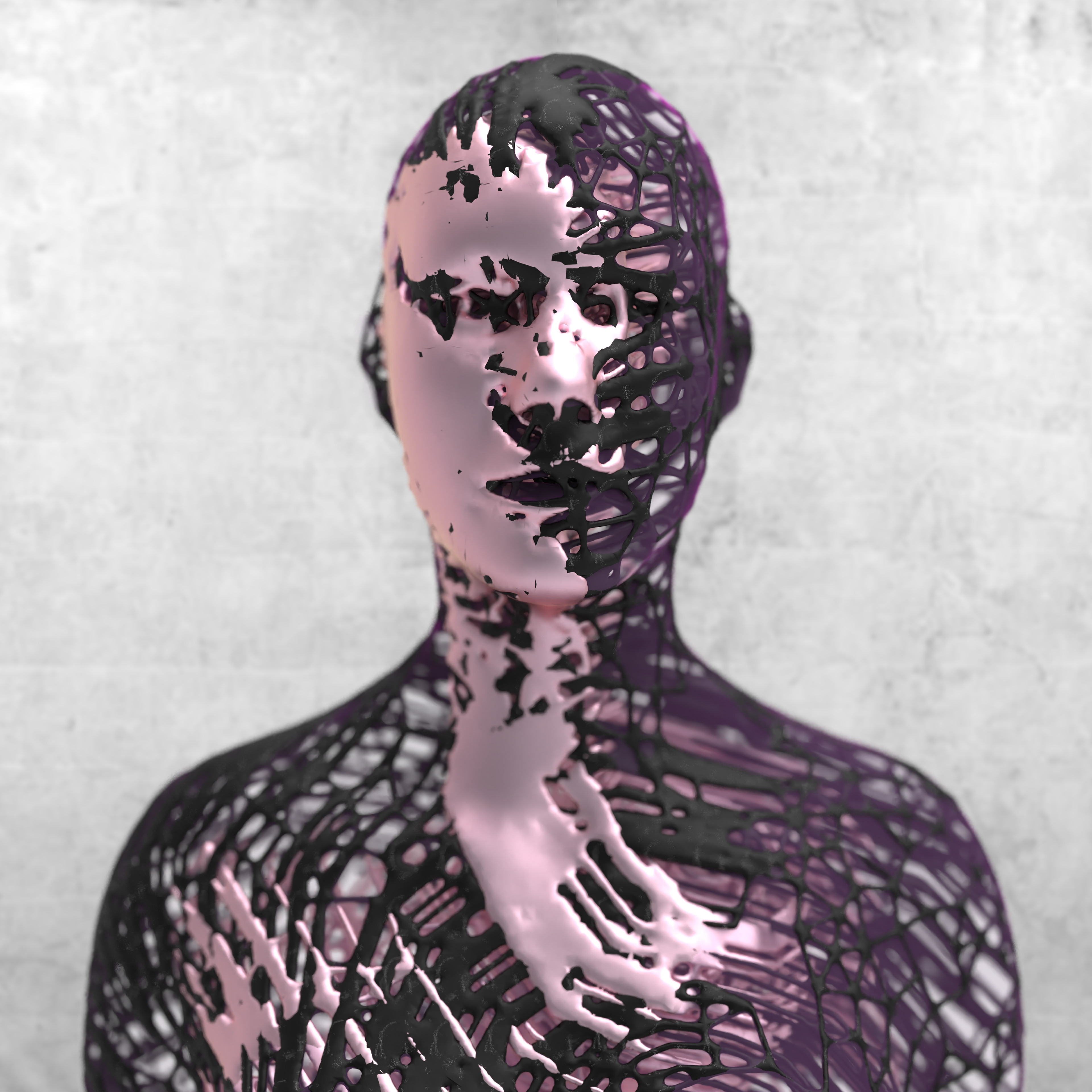 A series of parametric 3D explorations focusing on a dissolution of the self at the intersection between ancient stories & materials and future spaces.