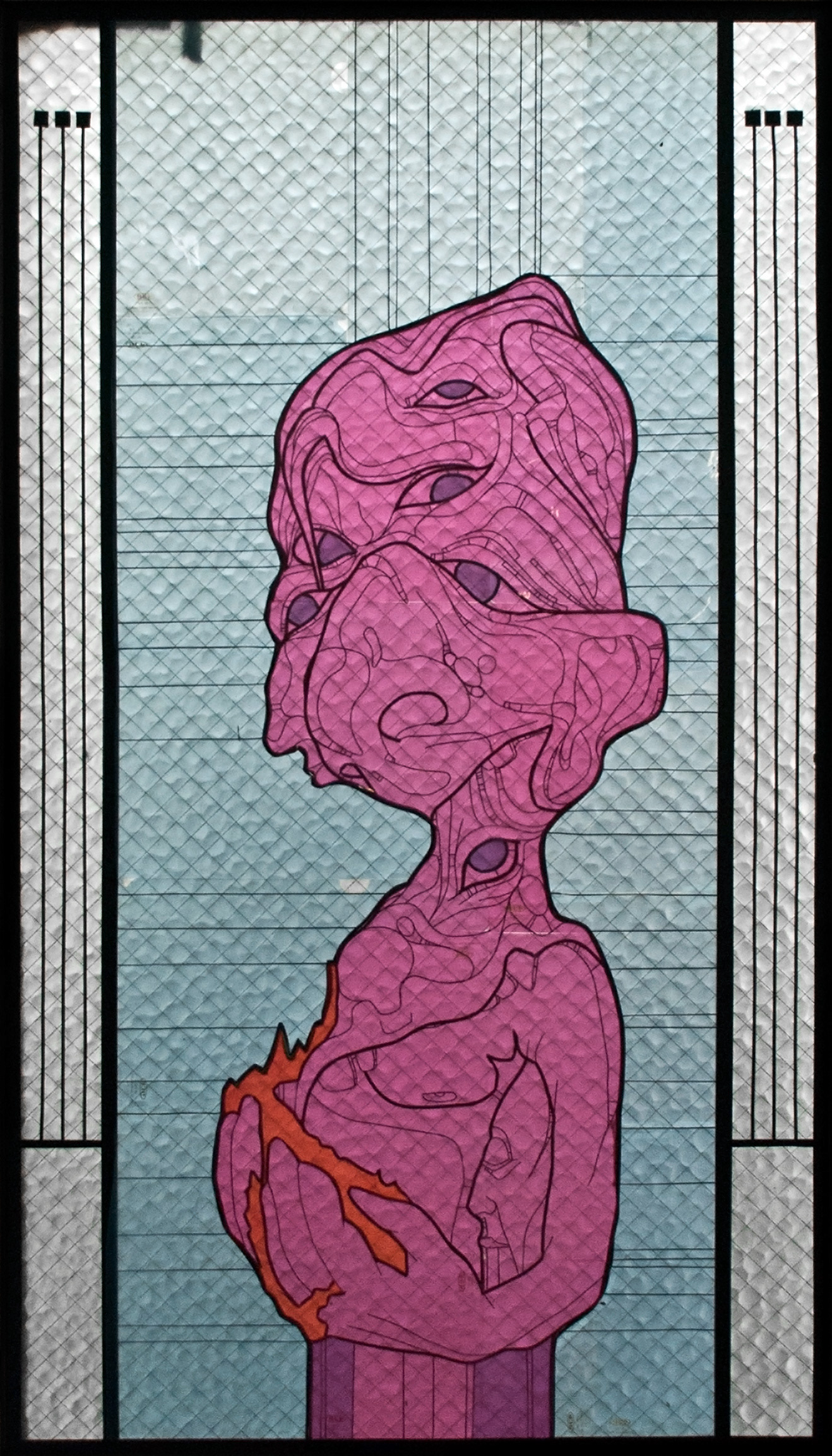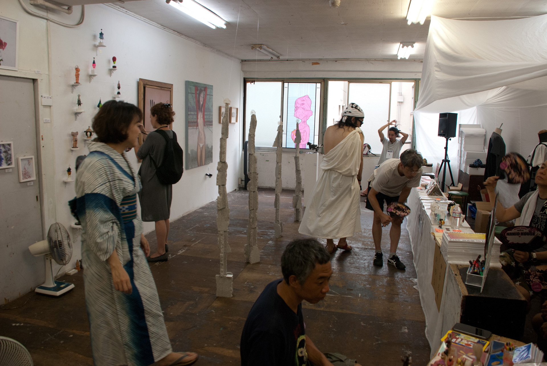 A group art show curated by Fumitoshi Nanjo inside "Bigakko", an art school in Jimbocho, Tokyo. Ray created a stained glass-inspired portrait on one of the windows out of graphic tape and clear file folders.