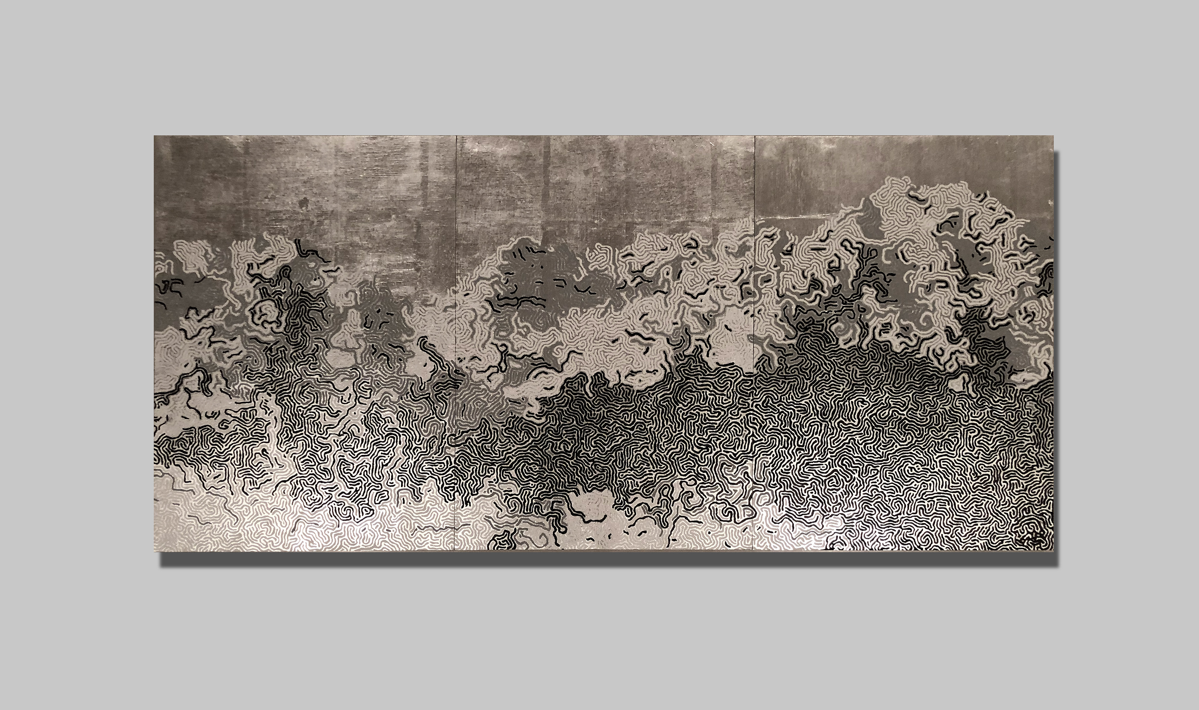 A series of work combining algorithmic experiments with more direct historical inspiration from Ray's long time home, Japan. The exhibition at Noritake Garden Gallery in Nagoya included collaborative work with award-winning ceramicist Dorothy Feibleman, where Ray's animations were projected onto Dorothy's vessels.