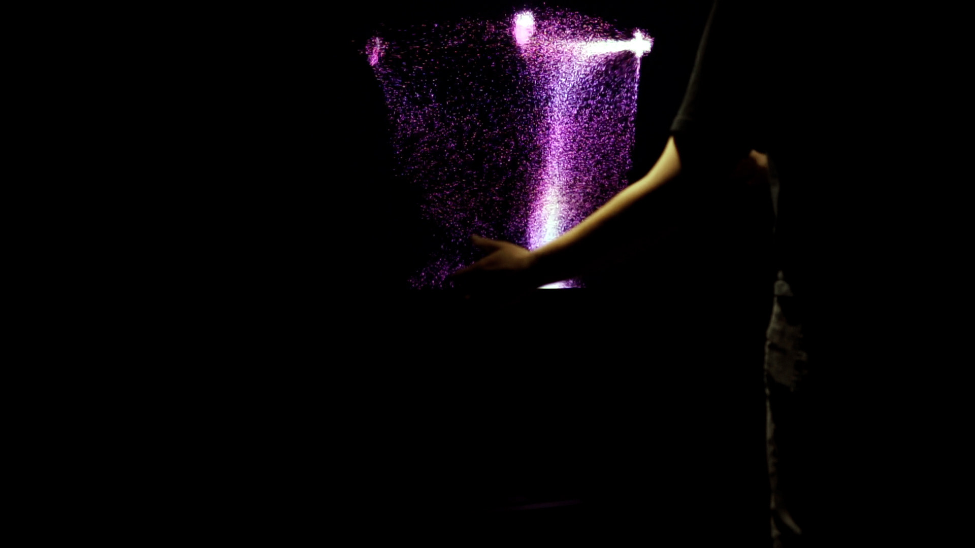 A motion sensor and screen on one side mirrors the person graphically in an introverted, calming way, a motion sensor and screen on the opposite side mirrors the person in a visually extroverted, empowered way. The animations change in real time with the person's movements, and also with the sound in the room. It is meant to be as playful for some viewers as it is contemplative for others.